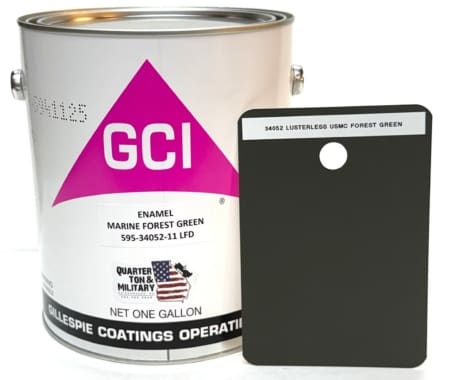 This is a very high quality and very correct gallon of 34052 Flat USMC Forrest Green paint. This is correct for US Marine Corps vehicles from WWII to present. This color is very common for USMC WWII jeeps and trucks. This is US Made and is the super high quality Gillespie Coatings brand. This is enamel. This is the correct shade of 34052 and not some off brand industrial paint that some guy has had mixed up just to sell on ebay or his web sight. This is the top of the line and the paint all the serious collectors and the US Military Museum systems use. Just ask any of the serious collectors or military vehicle restorers about the Gillespie Brand. Ok, I tried to take a picture of our sample chip and that is really the best I can do to show you the color. We do combine shipping. QTM Parts. Sorry Over seas buyers. This can not and will not be shipped overseas by us. This can only go to the lower 48 states. . Remember this is old school single stage enamel. This does not need hardener or any additives. If you start adding things you will loose the flat quality of the paint. This will need to be mixed thoroughly and or shaken up before each use. Failure to do so will cause the paint to have a sheen. I can get a complete jeep frame axles and all and about half the tub with one gallon depending on how many coats I use. Remember everyone paints differently so there is no real formula on how exact your coverage will be with a single gallon. I personally use two gallons and 12 spray cans for a jeep restoration and will have a little left over. Paint Shipping Rules: Gallons are shipped in singles, doubles, and cases of four. They can not be combined with any other items due to HAZMAT shipping rules. They will only be shipped FedEx Ground or Home delivery.