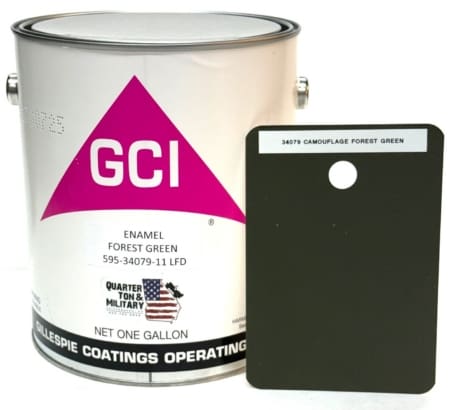 This is a very high quality and very correct gallon of 34079 Flat Forrest OD paint. This came out around 1975 and was the base color for all the US military vehicles up through the early 80’s. This is the base color for the four color or MERC Camo pattern. This is US Made and is the super high quality Gillespie Coatings brand. This is enamel. This is enamel. Mixing instructions are on the back of the can. This is old school single stage paint. No hardener or any other modern additives to add. Thin with xylene and shoot. This is the correct shade of 34079 and not some off brand industrial paint that some guy has had mixed up just to sell on ebay or his web sight. This is the top of the line and the paint all the serious collectors and the US Military Museum systems use. Just ask any of the serious collectors or military vehicle restorers about the Gillespie Brand. Ok, I tried to take a picture of our sample chip and that is really the best I can do to show you the color. We do combine shipping.