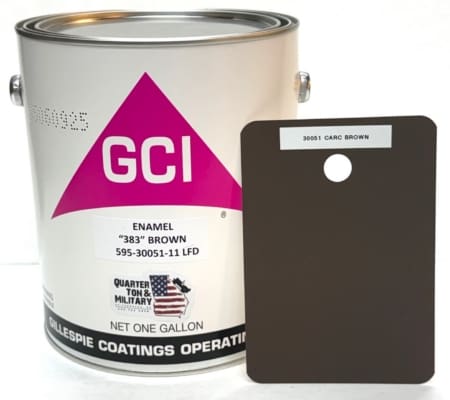 This is a very high quality and very correct gallon of 30051 Flat brown paint. This is commonly referred to as 383 CARC brown. This color showed up in the very early 70’s and is still in use currently. This is a CARC substitute since the original paint had very dangerous materials used in production. This is very common on the 2 1/2 and five ton trucks as well as the M880, CUCV, M151A2, and Hummers. This is also used in the three and four color camo patterns. This is US Made and is the super high quality Gillespie Coatings brand. This is the correct shade of 30051 and not some off brand industrial paint that some guy has had mixed up just to sell on ebay or his web sight. This is the top of the line and the paint all the serious collectors and the US Military Museum systems use. Just ask any of the serious collectors or military vehicle restorers about the Gillespie Brand. Sorry Over seas buyers. This can not and will not be shipped overseas by us. This can only go to the 48 lower states. Remember this is old school single stage enamel. This does not need hardener or any additives. If you start adding things you will loose the flat quality of the paint. This will need to be mixed thoroughly and or shaken up before each use. Failure to do so will cause the paint to have a sheen. I can get a complete jeep frame axles and all and about half the tub with one gallon depending on how many coats I use. Remember everyone paints differently so there is no real formula on how exact your coverage will be with a single gallon. I personally use two gallons and 12 spray cans for a jeep restoration and will have a little left over. Paint Shipping Rules: Gallons are shipped in singles, doubles, and cases of four. They can not be combined with any other items due to HAZMAT shipping rules. They will only be shipped FedEx Ground or Home delivery.